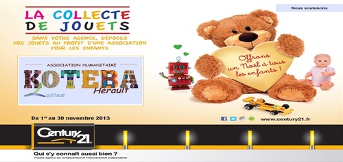 Depuis plusieurs années, de nombreuses initiatives portant sur des actions de collecte de jouets au profit d’associations diverses sont menées avec succès par des agences du réseau CENTURY 21. Ce sont des dizaines de milliers de jouets qui ont déjà été collectés par notre réseau et ont permis à de nombreux enfants de vivre la magie de Noël.